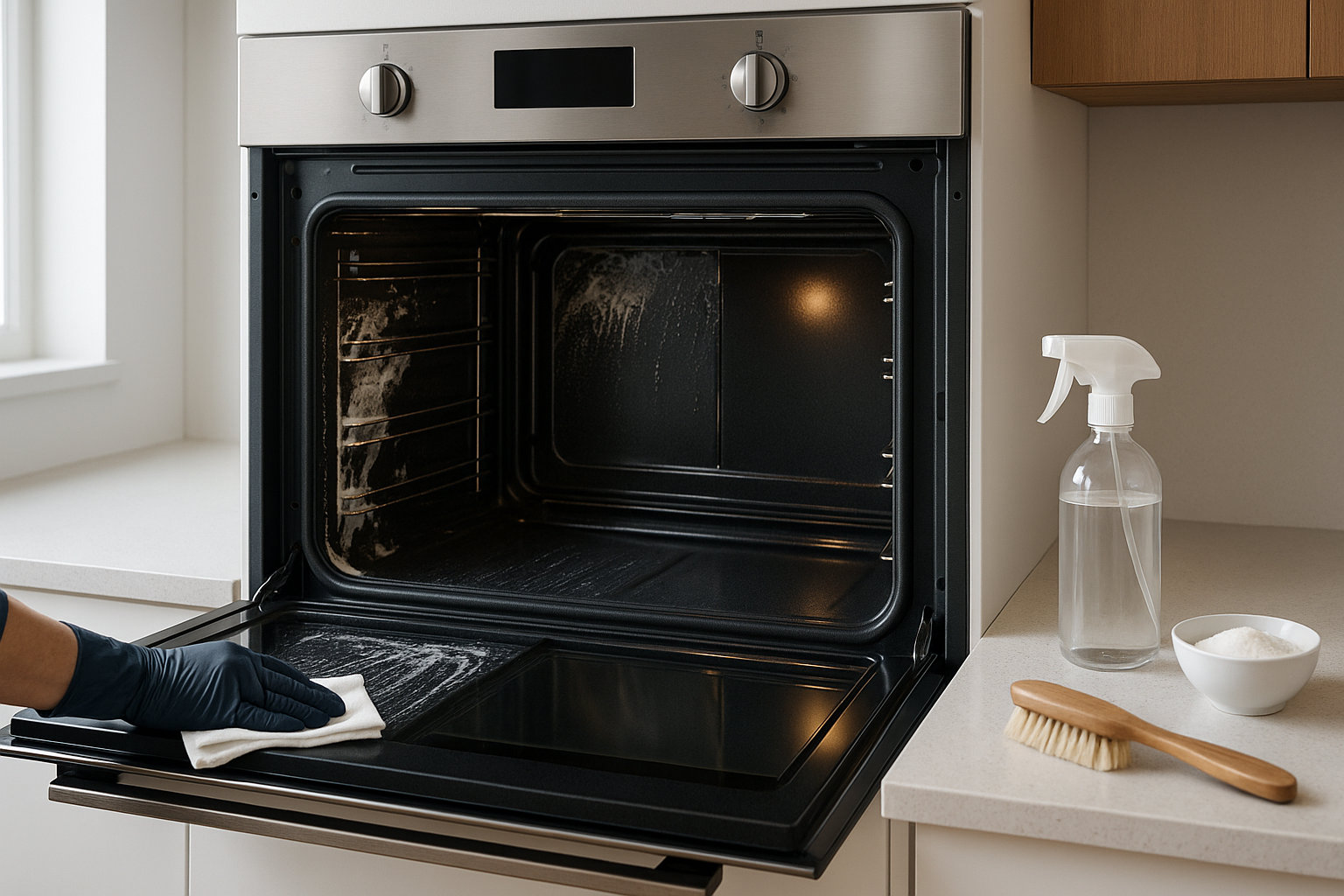 This is where guests are most unforgiving. Empty the fridge and freezer completely. Wipe shelves, bins, and door gaskets, then dry so items do not slide. Check the oven and stovetop. Remove burners and drip pans if possible and soak them. Degrease hoods and filters. Wipe the microwave inside, including the ceiling and the roller ring. Run the dishwasher on a cleaning cycle when needed and clear the filter of food bits. Scrub and sanitize the sink, faucet, and disposal splash guard using a brush that reaches under the gasket. Pull out the toaster tray to empty crumbs. Wipe small appliances, cords, and counter outlets. Sanitize handles for fridge, oven, and cabinets.